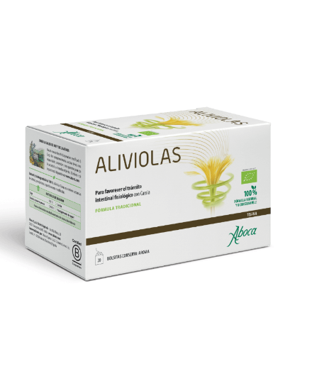 Aliviolas Tisana resulta útil para favorecer el tránsito intestinal fisiológico y actúa respetando el intestino gracias a la sinergia de: